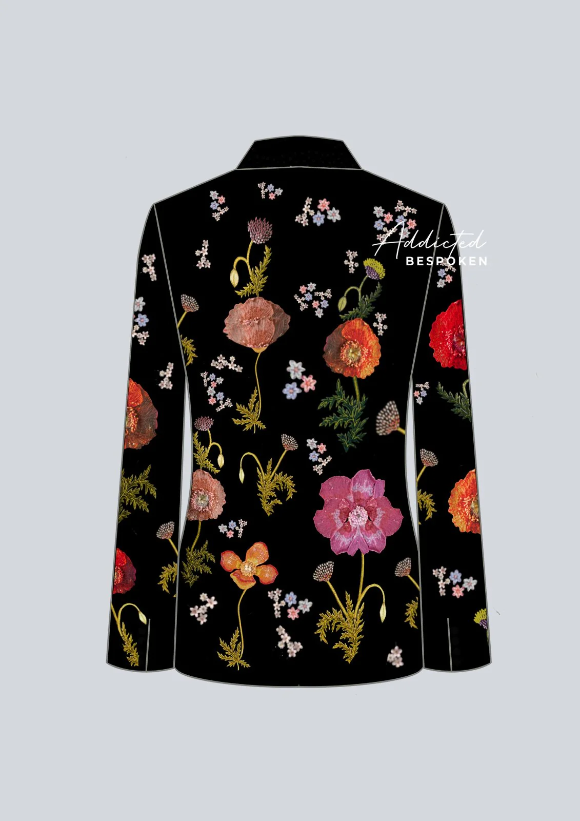Step into Sophistication with our Men's Designer Black Cotton Western Wedding Suit, adorned with intricate Poppy Flowers Flora & Fauna embroidery. Perfect for the modern groom, this avant-garde ensemble seamlessly merges timeless elegance with contemporary flair. Meticulously crafted and detailed, it's not just a suit, but a remarkable Gift For Him. Elevate your wedding attire with this bespoke masterpiece, tailored for those who value refined fashion. Unveil an unforgettable celebration as tradition meets modernity in this captivating piece, designed for the discerning gentleman.