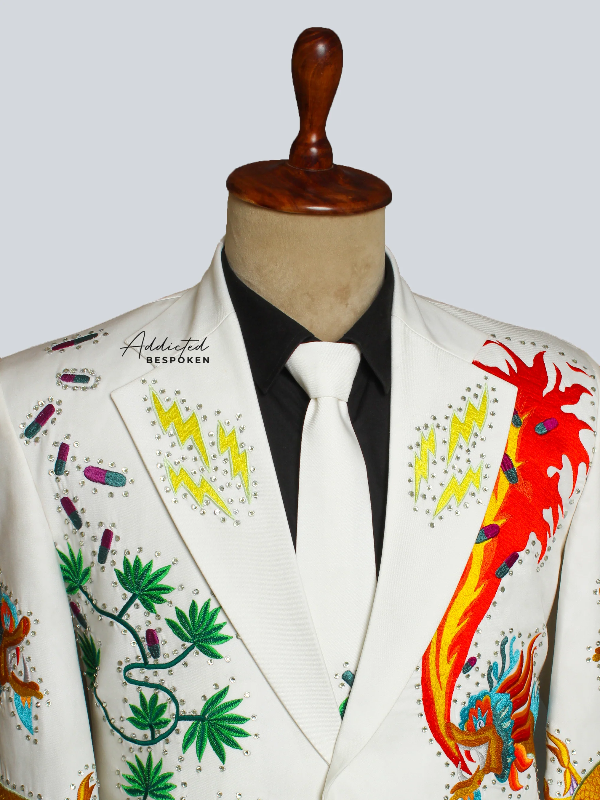 Explore elegance with our men's customized white cotton 2-piece suit, meticulously embroidered for proms, cocktails, and weddings. Crafted to fit impeccably at every seam, this suit combines classic sophistication with personalized style, ensuring you stand out on your special day.
