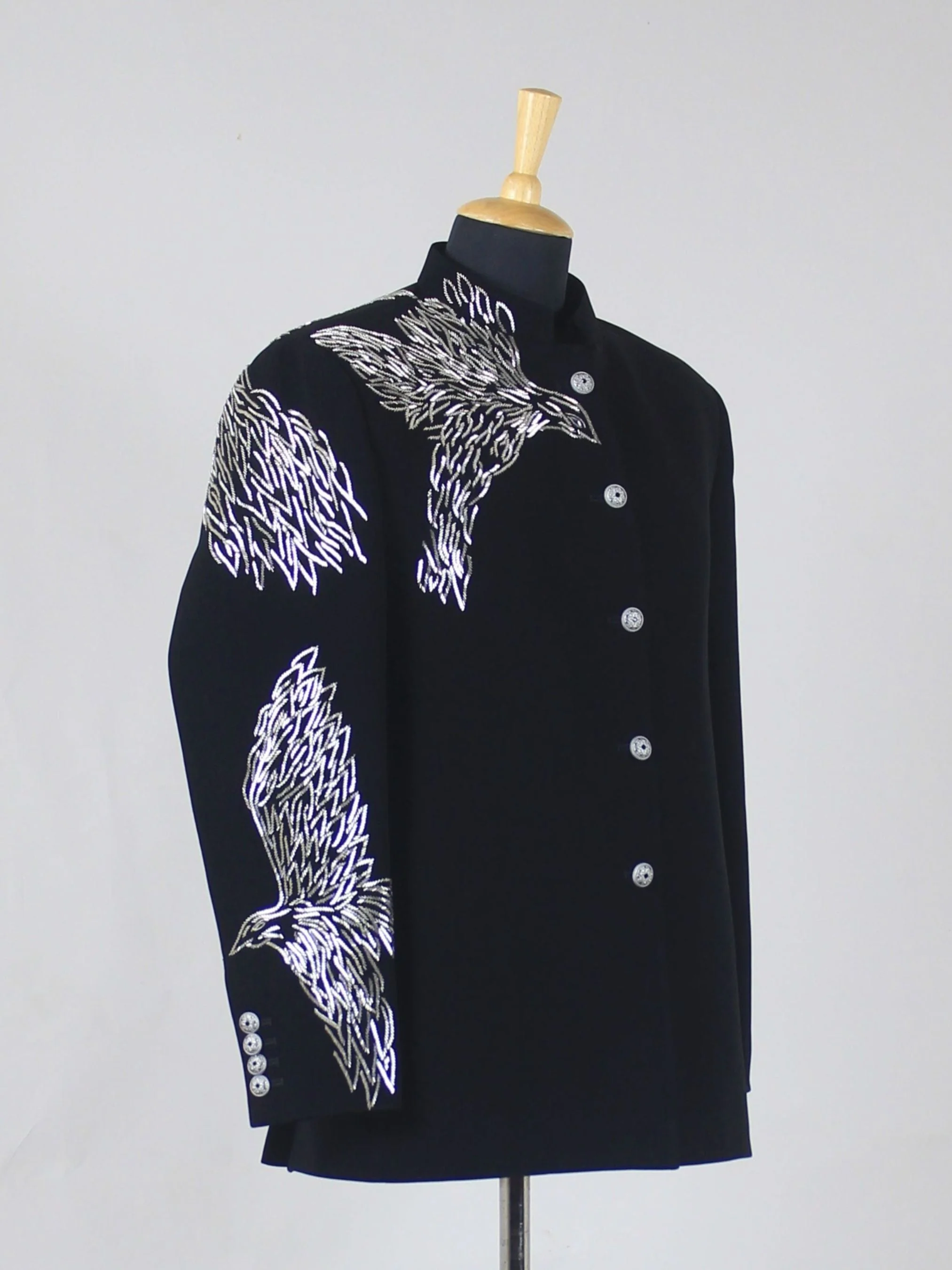 The Embellished Eagle embroidered jacket is made of luxurious cotton fabric. Immerse yourself in a world where fashion meets artistry, where each stitch tells a story of elegance and strength. Customize every detail to reflect your distinct taste, from the captivating eagle embroidery that graces the fabric to the choice of colors and materials. Tailor this masterpiece to resonate with your unique personality.