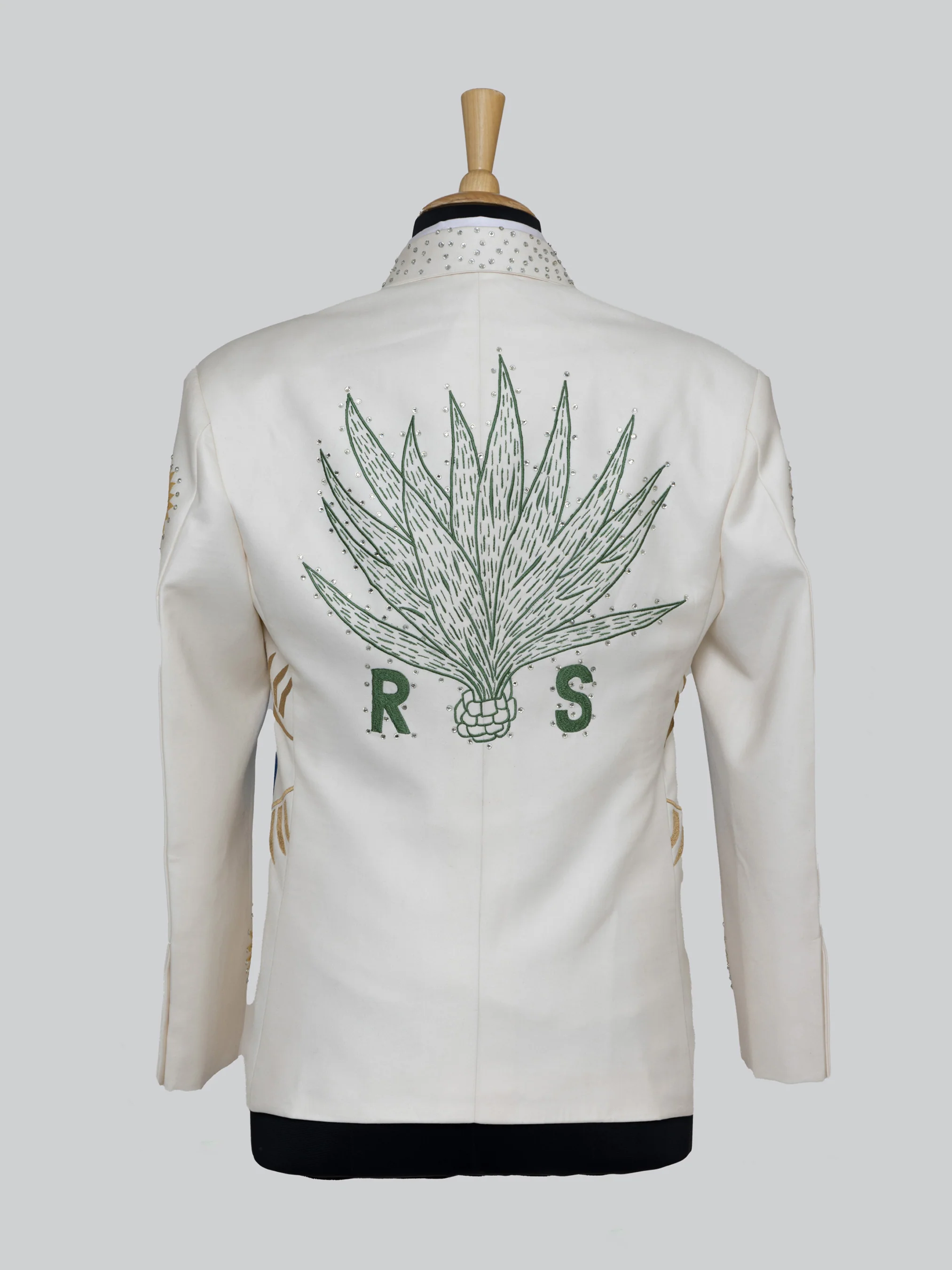 Adorned with gorgeous embroidery, the rhinestone-studded country western suit is made from high-quality cotton fabric. This suit has features including a single-breasted blazer with evil eye embroidery on the front of the blazer, a notch lapel, rhinestone work, an embroidered tie, sleeves with floral embroidery, button closure, and an embroidered pant.